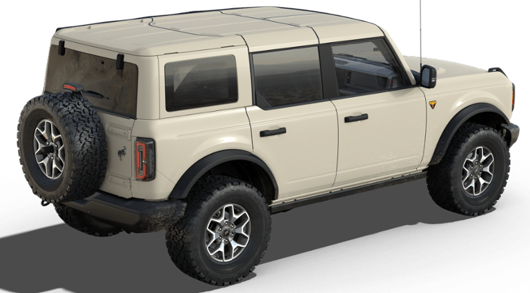 Desert Sand 2025 Ford Bronco Badlands 4WD 10-Speed Automatic 2.7L EcoBoost V6 2-Door Intelligent Access w/Lock/Unlock, 360-Degree Camera, 4-Wheel Disc Brakes, 4.7 Axle Ratio, 7 Speakers, ABS brakes, Adaptive Cruise Control, Air Conditioning, Alloy wheels, AM/FM radio: SiriusXM with 360L, AM/FM Stereo, Ambient Footwell Lighting, Auto High-Beam Headlamps, Auto High-beam Headlights, Auto-dimming Rear-View mirror, BLIS Blind Spot Information System, Body Color-Painted Hard Top, Brake assist, Compass, Connected Navigation, Delay-off headlights, Dr & Pass Illuminated Sliding Visor Vanity Mirrors, Driver door bin, Driver vanity mirror, Dual front impact airbags, Dual front side impact airbags, Dual Smart Charging USB Ports, Dual-Zone Electronic Automatic Temperature Control, Electronic Stability Control, Emergency communication system: 911 Assist, Equipment Group 334A Lux Package, Evasive Steering Assist, Exterior Parking Camera Rear, Front anti-roll bar, Front Bucket Seats, Front Center Armrest, Front fog lights, Front Parking Sensors, Front reading lights, Front Row Heated Seats, Front wheel independent suspension, Fully automatic headlights, Hard Top Sound Deadening Headliner, Heated door mirrors, Heated front seats, Heated steering wheel, Illuminated entry, Information on Demand Panel, Integrated roll-over protection, Internet access capable: FordPass Connect, Lane-Keeping System, Leather Shift Knob, Low tire pressure warning, Marine Grade Vinyl Heated Bucket Seats, Occupant sensing airbag, Outside temperature display, Overhead airbag, Overhead console, Panic alarm, Passenger door bin, Passenger vanity mirror, Power door mirrors, Power Outlet - Back Side of Center Floor Console, Power steering, Power windows, Pre-Collision Assist w/Automatic Emergency Braking, Radio data system, Radio: B&O Sound System by Bang & Olufsen, Rear Parking Sensors, Rear-View Camera, Rear-Window Defroster & Washer, Remote keyless entry, Security system, Sideview Mirrors, SiriusXM w/360L, Speed control, Split folding rear seat, Steering wheel mounted audio controls, SYNC 4, Tachometer, Telescoping steering wheel, Tilt steering wheel, Traction control, Trip computer, Universal Garage Door Opener, Variably intermittent wipers, Voltmeter, Wheels: 17 Carbonized Gray-Painted Aluminum. Price includes: $2500 - Retail Customer Cash. Exp. 03/31/2026