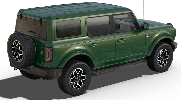 Eruption Green Metallic 2025 Ford Bronco Outer Banks 4WD 10-Speed Automatic 2.7L EcoBoost V6 Alloy Wheels, Aluminum Wheels, Bluetooth®, Leather Seats, Navigation System, Backup Camera, Remote Start, 18 Bright Machined Aluminum Wheels, 3.73 Axle Ratio, 360-Degree Camera, Adaptive Cruise Control, Alloy wheels, Equipment Group 314A Lux Package, Evasive Steering Assist, Exterior Parking Camera Rear, Front Parking Sensors, Hard Top Sound Deadening Headliner, Information on Demand Panel, Navigation system: Connected Navigation, Painted Hard Top, Radio: B&O Sound System by Bang & Olufsen, Rear-Window Defroster & Washer, Sideview Mirrors, Universal Garage Door Opener, 4-Wheel Disc Brakes, 7 Speakers, ABS brakes, Air Conditioning, AM/FM radio: SiriusXM with 360L, AM/FM Stereo, Auto High-beam Headlights, Auto-dimming Rear-View mirror, Automatic temperature control, Brake assist, Compass, Connected Navigation, Delay-off headlights, Driver door bin, Driver vanity mirror, Dual front impact airbags, Dual front side impact airbags, Electronic Stability Control, Emergency communication system: 911 Assist, Front anti-roll bar, Front Bucket Seats, Front Center Armrest, Front dual zone A/C, Front fog lights, Front reading lights, Front wheel independent suspension, Fully automatic headlights, Heated door mirrors, Heated front seats, Heated Leather-Trimmed/Vinyl Bucket Seats, Heated steering wheel, Illuminated entry, Integrated roll-over protection, Leather Shift Knob, Low tire pressure warning, Occupant sensing airbag, Outside temperature display, Overhead airbag, Overhead console, Panic alarm, Passenger door bin, Passenger vanity mirror, Power door mirrors, Power driver seat, Power passenger seat, Power steering, Power windows, Radio data system, Rear seat center armrest, Remote keyless entry, Security system, SiriusXM w/360L, Speed control, Split folding rear seat, Steering wheel mounted audio controls, SYNC 4, Tachometer, Telescoping steering wheel, Tilt steering wheel, Traction control, Trip computer, Variably intermittent wipers, Voltmeter, 18 Bright Machined Aluminum Wheels, 3.73 Axle Ratio, 360-Degree Camera, Adaptive Cruise Control, Alloy wheels, Equipment Group 314A Lux Package, Evasive Steering Assist, Exterior Parking Camera Rear, Front Parking Sensors, Hard Top Sound Deadening Headliner, Information on Demand Panel, Navigation system: Connected Navigation, Painted Hard Top, Radio: B&O Sound System by Bang & Olufsen, Rear-Window Defroster & Washer, Sideview Mirrors, Universal Garage Door Opener. Price does not include applicable tax, Doc fee of $387, Temporary Tag of $20, Title Fee of $15. ‡Vehicles shown at different locations are not currently in our inventory (Not in Stock) but can be made available to you at our location within a reasonable date from the time of your request, not to exceed one week.$2500 - Retail Customer Cash. Exp. 03/31/2026