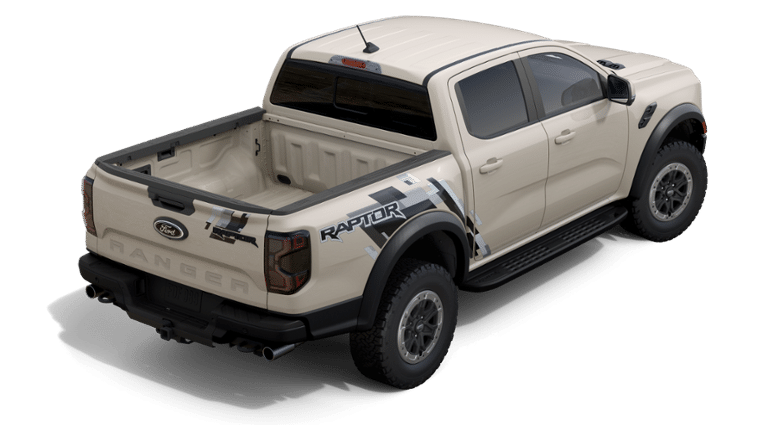 Desert Sand 2025 Ford Ranger Raptor 4WD 10-Speed Automatic 3.0L EcoBoost V6 4WD, 10 Speakers, 4-Wheel Disc Brakes, 4.27 Axle Ratio, ABS brakes, Air Conditioning, Alloy wheels, AM/FM radio: SiriusXM, Auto High-beam Headlights, Auto-dimming Rear-View mirror, Automatic temperature control, Brake assist, Compass, Delay-off headlights, Driver door bin, Driver vanity mirror, Dual front impact airbags, Dual front side impact airbags, Electronic Stability Control, Emergency communication system: SYNC 4 911 Assist, Equipment Group 800A Standard, Front anti-roll bar, Front Bucket Seats, Front Center Armrest, Front dual zone A/C, Front fog lights, Front reading lights, Front wheel independent suspension, Fully automatic headlights, Garage door transmitter, Heated door mirrors, Heated front seats, Heated steering wheel, Illuminated entry, Internet access capable: FordPass Connect 4G, Leather Shift Knob, Leather steering wheel, Leather-Trimmed Front Heated Bucket Seats, Low tire pressure warning, Memory seat, Navigation system: Connected Navigation, Occupant sensing airbag, Outside temperature display, Overhead airbag, Overhead console, Panic alarm, Passenger door bin, Passenger vanity mirror, Power door mirrors, Power driver seat, Power passenger seat, Power steering, Power windows, Radio: B&O Sound System by Bang & Olufsen, Rain sensing wipers, Raptor Exterior Graphics, Rear reading lights, Rear seat center armrest, Rear step bumper, Rear window defroster, Remote keyless entry, Security system, SiriusXM Satellite Radio, Speed control, Speed-sensing steering, Steering wheel mounted audio controls, SYNC 4A, Telescoping steering wheel, Tilt steering wheel, Traction control, Trip computer, Turn signal indicator mirrors, Variably intermittent wipers, Voltmeter, Wheels: 17 Forged Beadlock Capable, Wheels: 17 Gray-Painted Aluminum, 4WD.