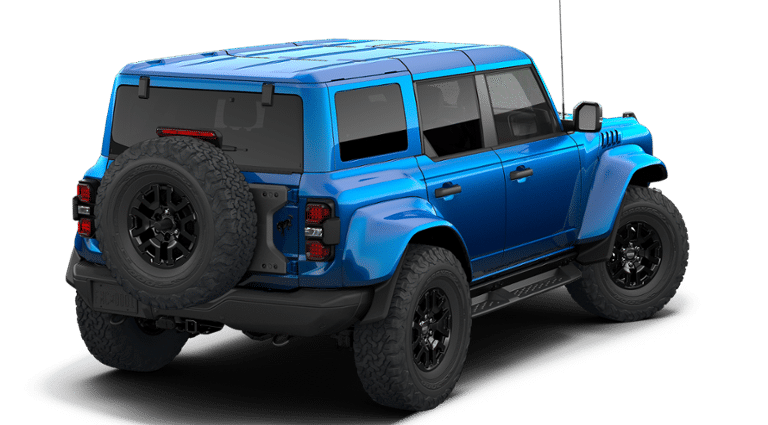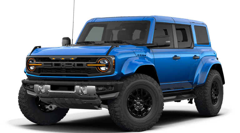 Blue Metallic 2026 Ford Bronco Raptor 4WD 10-Speed Automatic 3.0L EcoBoost V6 12 Speakers, 4-Wheel Disc Brakes, ABS brakes, Air Conditioning, Alloy wheels, AM/FM radio: SiriusXM with 360L, Auto High-beam Headlights, Auto-dimming Rear-View mirror, Automatic temperature control, Brake assist, Compass, Connected Navigation, Convertible HardTop, Convertible roof lining, Delay-off headlights, Driver door bin, Driver vanity mirror, Dual front impact airbags, Dual front side impact airbags, Electronic Stability Control, Emergency communication system: 911 Assist, Equipment Group 374A Lux Package, Exterior Parking Camera Rear, Ford Connectivity Package (1-Year Included), Front anti-roll bar, Front Bucket Seats, Front Center Armrest, Front dual zone A/C, Front fog lights, Front reading lights, Front wheel independent suspension, Fully automatic headlights, Glass rear window, Hard Top Sound Deadening Headliner, Heated door mirrors, Heated front seats, Heated steering wheel, Illuminated entry, Integrated roll-over protection, Leather Shift Knob, Low tire pressure warning, Marine Grade Vinyl Bucket Seats, Navigation system: Connected Navigation, Occupant sensing airbag, Outside temperature display, Overhead airbag, Overhead console, Painted Hard Top, Panic alarm, Passenger door bin, Passenger vanity mirror, Power door mirrors, Power steering, Power windows, Radio data system, Rear anti-roll bar, Rear seat center armrest, Rear window defroster, Rear window wiper, Rear-Window Defroster and Washer, Remote keyless entry, Security system, SiriusXM with 360L, Speed control, Split folding rear seat, Steering wheel mounted audio controls, SYNC 4, Tachometer, Telescoping steering wheel, Tilt steering wheel, Traction control, Trip computer, Turn signal indicator mirrors, Variably intermittent wipers, Voltmeter, Wheels: 17 Black High Gloss-Painted Aluminum.