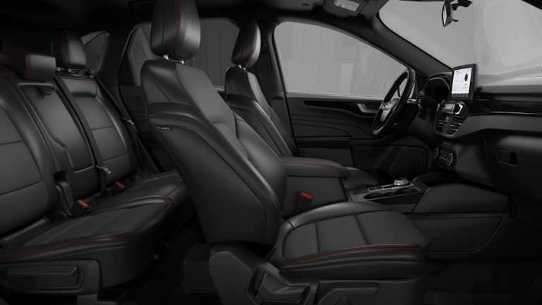 Agate Black Metallic 2026 Ford Escape ST-Line Select AWD 8-Speed Automatic EcoBoost 2.0L I4 GTDi DOHC Turbocharged VCT AWD, 10-Way Power Driver's Seat w/Memory, 4-Way Manual Front Passenger Seat, 4-Wheel Disc Brakes, 6 Speakers, 8-Way Power Driver Seat, ABS brakes, Air Conditioning, Alloy wheels, AM/FM radio: SiriusXM 360L, Auto High-beam Headlights, Automatic temperature control, Black Roof-Rack Side Rails, Brake assist, Bumpers: body-color, Compass, Delay-off headlights, Driver door bin, Driver vanity mirror, Dual front impact airbags, Dual front side impact airbags, Electronic Fuel Door Release, Electronic Stability Control, Emergency communication system: SYNC 4 911 Assist, Equipment Group 401A, Ford App, Four wheel independent suspension, Front and Rear Floor Liners with Carpet Mats, Front anti-roll bar, Front Bucket Seats, Front Center Armrest, Front dual zone A/C, Front fog lights, Front reading lights, Fully automatic headlights, Heated door mirrors, Heated front seats, Heated steering wheel, Illuminated entry, Knee airbag, Low tire pressure warning, Memory seat, Neutral Towing Capability, Occupant sensing airbag, Outside temperature display, Overhead airbag, Overhead console, Panic alarm, Panoramic Vista Roof, Partial Vinyl/Cloth Heated Front Sport Contour Bucket Seats with Red Stitching, Passenger door bin, Passenger vanity mirror, Pedestrian Alert Sounder, Power door mirrors, Power driver seat, Power Liftgate, Power steering, Power windows, Radio data system, Radio: AM/FM Stereo with SiriusXM 360L, Rear anti-roll bar, Rear reading lights, Rear seat center armrest, Rear window defroster, Rear window wiper, Remote keyless entry, Speed control, Speed-sensing steering, Speed-Sensitive Wipers, Split folding rear seat, Spoiler, Sport steering wheel, Steering wheel mounted audio controls, SYNC 4, Tachometer, Telescoping steering wheel, Tilt steering wheel, Traction control, Trip computer, Variably intermittent wipers, Wheels: 18 Rock Metallic Painted Aluminum, AWD.