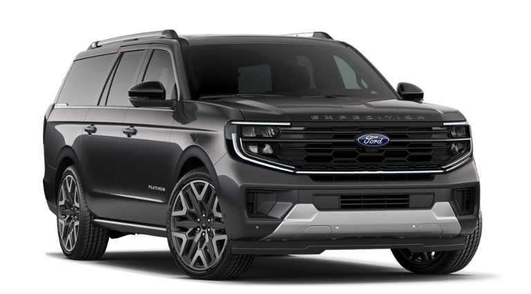 Dark Matter Gray Metallic 2026 Ford Expedition Max Platinum 4WD 10-Speed Automatic 3.5L V6 EcoBoost High Output 10 Speakers, 2nd Row Power-Folding Captain's Chairs, 3.73 Axle Ratio, 3rd row seats: split-bench, 4-Wheel Disc Brakes, ABS brakes, Air Conditioning, Alloy wheels, AM/FM radio: SiriusXM with 360L, Apple CarPlay/Android Auto, Auto High-beam Headlights, Auto-dimming door mirrors, Auto-dimming Rear-View mirror, Automatic temperature control, Black Headlamp Bezel with Satin Trim Applique, Black Onyx Painted Power Deployable Running Boards, BlueCruise (equipment + 1-Year + 90-Day Plan), BlueCruise Equipped (90-Day Trial), Brake assist, Bumpers: body-color, Carbon Black Front Bumper with Lit Grille Bar, Chrome Roof Rails with Black End Caps, Compass, Delay-off headlights, Driver door bin, Driver vanity mirror, Driver's Package, Dual front impact airbags, Dual front side impact airbags, Electronic Stability Control, Emergency communication system: 911 Assist, Engine Sound Enhancer, Equipment Group 600A Standard Package, Exterior Parking Camera Rear, Ford Connectivity Package (1-Year Included), Ford Digital Experience, Four wheel independent suspension, Front and 2nd Rows Floor Liners Without Carper Mats, Front anti-roll bar, Front Bucket Seats, Front Center Armrest, Front Door Scuff Plates with Met Insert and Bright Rear, Front dual zone A/C, Front reading lights, Fully automatic headlights, Garage door transmitter, Genuine wood dashboard insert, Genuine wood door panel insert, Heated and Ventilated Leather Front Captain's Chairs, Heated door mirrors, Heated front seats, Heated rear seats, Heated steering wheel, High Flow Exhaust System, Illuminated entry, Intersection Assist, Leather steering wheel, Low tire pressure warning, Memory seat, Multicontour Active Motion Lthr Frnt Captains Chairs, Navigation System, Occupant sensing airbag, Outside temperature display, Overhead airbag, Overhead console, Panic alarm, Passenger door bin, Passenger vanity mirror, Platinum Ultimate Interior Package, Platinum Ultimate Package, Polished Stainless Steel Beltline Molding, Power door mirrors, Power driver seat, Power moonroof: Vista Roof, Power passenger seat, Power steering, Power Tilt/Telescopic Steering Wheel with Memory, Power windows, Radio data system, Radio: B&O Play Unleashed, Radio: B&O Sound System by Bang and Olufsen, Rain sensing wipers, Rear air conditioning, Rear anti-roll bar, Rear reading lights, Rear Seat Radio Controls, Rear Side Windows Laminated Glass, Rear window defroster, Rear window wiper, Reclining 3rd row seat, Remote keyless entry, Satin Aluminum Expedition Lettering on Side and Hood, Satin Aluminum Platinum Badge on Tailgate, Security system, Signature Grille Lighting, SiriusXM with 360L, Speed control, Speed-sensing steering, Speed-Sensitive Wipers, Split folding rear seat, Spoiler, Steering wheel memory, Steering wheel mounted audio controls, Tachometer, Telescoping steering wheel, Tilt steering wheel, Traction control, Trip computer, Turn signal indicator mirrors, Variably intermittent wipers, Ventilated front seats, Voltmeter, Wheels: 20 x 8.5 Ebony Bright Machined Aluminum, Wheels: 22 x 9.0 Ebony Bright Machined Face Aluminum, Wheels: 24 x 9.5 Tarnished Dark Metallic.