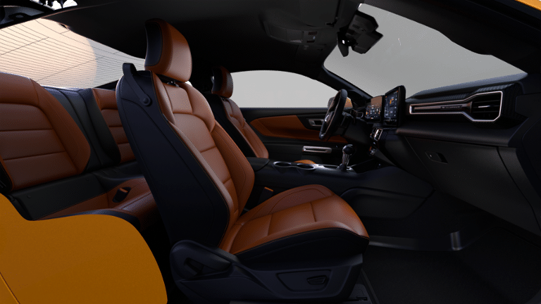 Orange 2026 Ford Mustang GT Premium RWD 10-Speed Automatic 5.0L V8 Ti-VCT Alloy Wheels, Aluminum Wheels, Bluetooth®, Leather Seats, Navigation System, Backup Camera, Remote Start, ActiveX Trimmed Bucket Seats, Alloy wheels, AM/FM Stereo, Auto High-beam Headlights, B&O Sound System by Bang & Olufsen with 12 Speakers, Climate Controlled Heated/Cooled Front Seats, Equipment Group 400A Standard Package, HD Radio, Power driver seat, Rain sensing wipers, Remote Start System, SiriusXM with 360L, SYNC 4, Wheels: 19 x 8.5 Shadow Silver-Painted Aluminum, 1st Row Carpeted Black Floor Mats, 4-Wheel Disc Brakes, ABS brakes, Active Valve Performance Exhaust, Air Conditioning, Automatic temperature control, Brake assist, Bumpers: body-color, Compass, Delay-off headlights, Driver door bin, Driver vanity mirror, Dual front impact airbags, Dual front side impact airbags, Electronic Stability Control, Emergency communication system: 911 Assist, Exterior Parking Camera Rear, Ford Co-Pilot360 Assist+, Four wheel independent suspension, Front anti-roll bar, Front Bucket Seats, Front Center Armrest, Front dual zone A/C, Front reading lights, Fully automatic headlights, Illuminated entry, Knee airbag, Leather Shift Knob, Leather steering wheel, Low tire pressure warning, Occupant sensing airbag, Outside temperature display, Overhead airbag, Overhead console, Panic alarm, Passenger door bin, Passenger vanity mirror, Power door mirrors, Power steering, Power windows, Premium Floor Liners Front and Rear (with Carpet Mats), Radio data system, Rear anti-roll bar, Rear Parking Sensors, Rear window defroster, Remote keyless entry, Speed control, Speed-sensing steering, Speed-Sensitive Wipers, Split folding rear seat, Sport steering wheel, Steering wheel mounted audio controls, Tachometer, Telescoping steering wheel, Tilt steering wheel, Traction control, Trip computer, Variably intermittent wipers, Voltmeter, Wheels: 20 x 9 Premium-Painted Aluminum, ActiveX Trimmed Bucket Seats, Alloy wheels, AM/FM Stereo, Auto High-beam Headlights, B&O Sound System by Bang & Olufsen with 12 Speakers, Climate Controlled Heated/Cooled Front Seats, Equipment Group 400A Standard Package, HD Radio, Power driver seat, Rain sensing wipers, Remote Start System, SiriusXM with 360L, SYNC 4, Wheels: 19 x 8.5 Shadow Silver-Painted Aluminum.