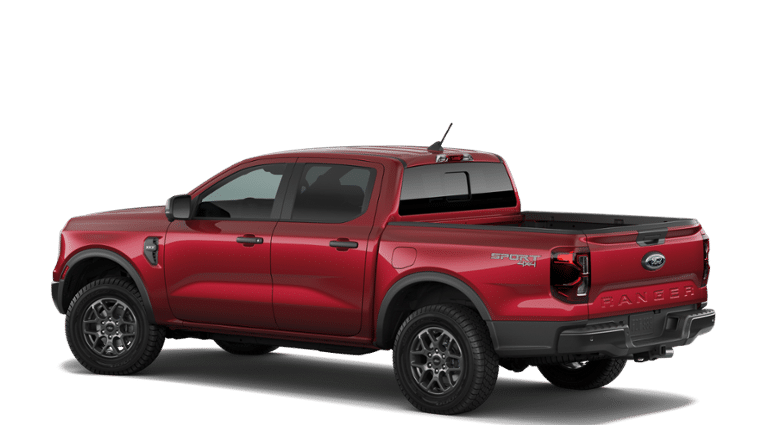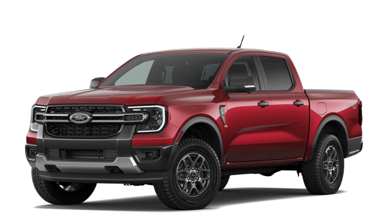 Ruby Red Metallic Tinted Clearcoat 2026 Ford Ranger XLT 4WD 10-Speed Automatic EcoBoost 2.3L I4 GTDi DOHC Turbocharged VCT 4WD, 12 Center Display, 4-Wheel Disc Brakes, 6 Speakers, ABS brakes, Air Conditioning, Alloy wheels, AM/FM radio: SiriusXM with 360L, AM/FM Stereo, Auto High-beam Headlights, Auto-dimming Rear-View mirror, Brake assist, Class IV Trailer Hitch Receiver, Cloth Front Bucket Seats, Compass, Delay-off headlights, Driver door bin, Driver vanity mirror, Dual front impact airbags, Dual front side impact airbags, Dual-Zone Electronic Climate Control (DEATC), Electronic Stability Control, Emergency communication system: SYNC 4 911 Assist, Equipment Group 301A High, Front anti-roll bar, Front Bucket Seats, Front Center Armrest, Front fog lights, Front reading lights, Front wheel independent suspension, Fully automatic headlights, Gray Painted Center Bar and Grille Surround, Gray Painted Front Fascia and Rear Bumper, Illuminated entry, Leather Shift Knob, Low tire pressure warning, Navigation system: Connected Navigation, Occupant sensing airbag, Outside temperature display, Overhead airbag, Overhead console, Panic alarm, Passenger door bin, Passenger vanity mirror, Power door mirrors, Power steering, Power windows, Power-Sliding Rear Window, Rear reading lights, Rear seat center armrest, Rear step bumper, Rear window defroster, Remote keyless entry, Security system, SiriusXM with 360L and 3-Month Trial Subscription, Speed control, Speed-sensing steering, Sport Appearance Package, Sport Box Decal, Steering wheel mounted audio controls, SYNC 4A with Connected Navigation, Telescoping steering wheel, Tilt steering wheel, Tough Bed Spray-in Bedliner, Traction control, Trailer Tow Package, Tray Style Floor Liner, Trip computer, Variably intermittent wipers, Voltmeter, Wheels: 17 Inch Gray-Painted Aluminum Alloy Sport, 4WD.