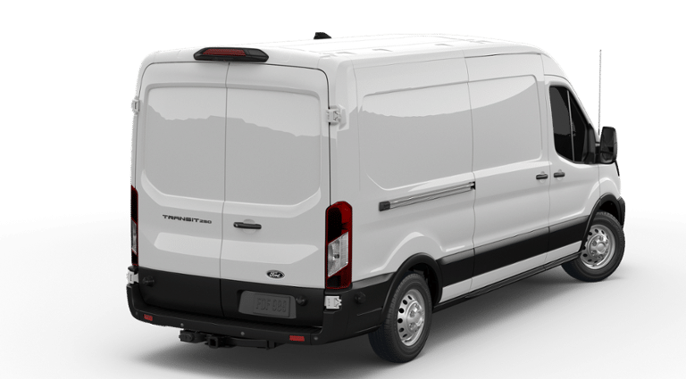Oxford White 2026 Ford Transit-250 RWD 10-Speed Automatic with Overdrive EcoBoost 3.5L V6 GTDi DOHC 24V Twin Turbocharged 253-Degree Rear Door Opening, 4 Speakers, 4-Wheel Disc Brakes, ABS brakes, Air Conditioning, AM/FM radio, AM/FM Stereo, Apple CarPlay/Android Auto, Auto High-beam Headlights, Brake assist, Dark Palazzo Gray Vinyl Bucket Seats, Delay-off headlights, Driver door bin, Driver's Seat Mounted Armrest, Dual front impact airbags, Dual front side impact airbags, Electronic Stability Control, Emergency communication system: 911 Assist, Exterior Parking Camera Rear, Ford Connectivity Package (1-Year Included), Frame Mounted Hitch Receiver, Front and Rear Vinyl Floor Covering, Front anti-roll bar, Front Bucket Seats, Front License Plate Bracket, Front reading lights, Front wheel independent suspension, Fully automatic headlights, Heavy-Duty Front Axle, Heavy-Duty Trailer Tow Package, Illuminated entry, Large Center Console, Low tire pressure warning, Navigation system: Connected Navigation, Occupant sensing airbag, Order Code 101A, Overhead airbag, Panic alarm, Passenger cancellable airbag, Passenger door bin, Power door mirrors, Power steering, Power windows, Rain sensing wipers, Remote keyless entry, Speed control, Steering wheel mounted audio controls, SYNC 4, Tachometer, Telescoping steering wheel, Tilt steering wheel, Tow/Haul Mode with Trailering Wiring Provisions, Traction control, Trailer Brake Controller, Variably intermittent wipers, Vinyl Front Bucket Seats, Wheels: 16 Silver Steel with Black Hubcap, Wheels: 16 Silver Steel with Silver Hubcaps.